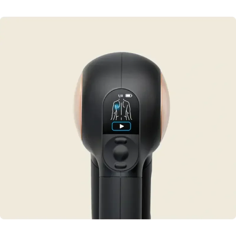 „Theragun Sense Gen 2“ – pažangus perkusinės terapijos masažo pistoletas, skirtas ne tik raumenų atsistatymui, bet ir streso mažinimui, miego kokybės gerinimui bei bendros savijautos stiprinimui. Integruota LCD ekrano sistema, vaizdinės gaires ir slėgio jutiklis leidžia tiksliai taikyti masažą ten, kur reikia, taip pat prietaisas pasižymi tylia ir ergonomiška konstrukcija, todėl patogus naudoti tiek namuose, tiek sporto metu. Reguliuojamos penkios greičio pakopos, Bluetooth ryšys su programėle „Therabody App“ bei patogus trikampis rankenos dizainas užtikrina, kad masažas būtų efektyvus ir malonus.